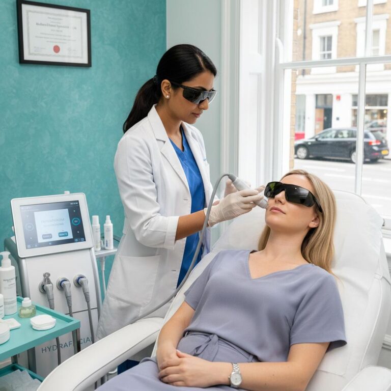 HydraFacial is a non-invasive skin treatment that deeply cleanses, exfoliates, extracts impurities, and hydrates the skin, improving texture, tone, and radiance while delivering instant, refreshed, and glowing results with no downtime.