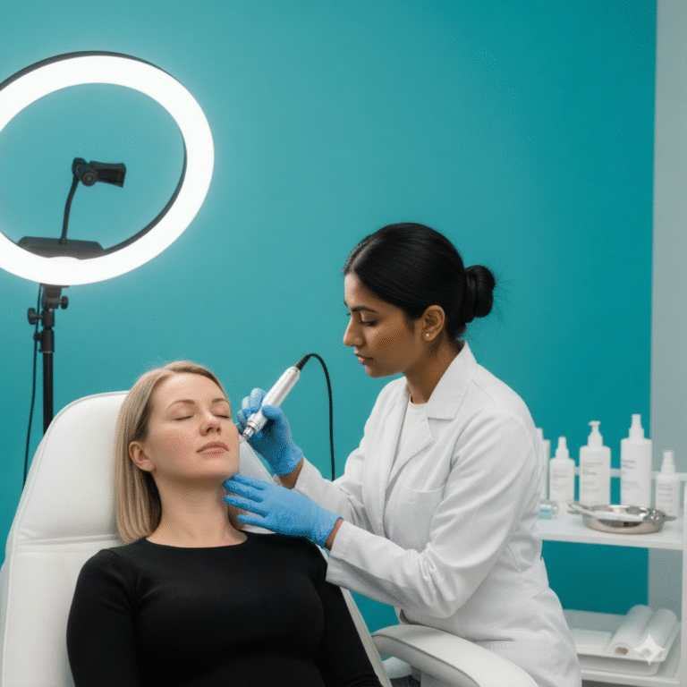 RF Microneedling is a cosmetic treatment using tiny needles to create controlled micro-injuries in the skin, stimulating collagen, improving texture, reducing scars, refining pores, and promoting smoother, healthier skin overall.